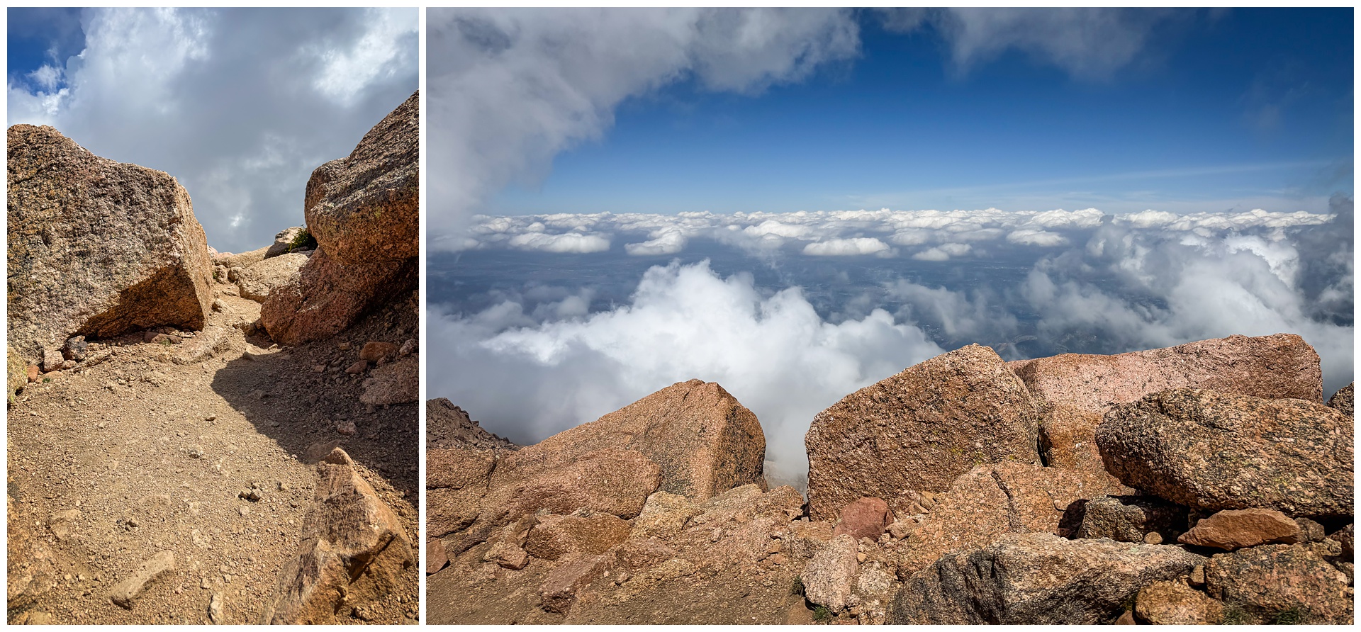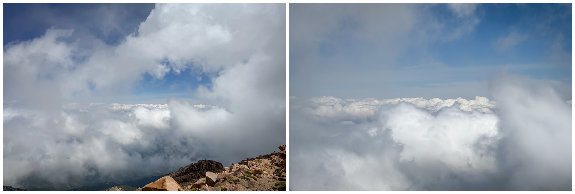 If l’d known ahead of time that this Pikes Peak hike wouldn’t come with the clear skies and far-reaching views l’ve had here before, I might have been disappointed. But as it turned out, no other time has taken my breath away — in a figurative sense — quite like this one.