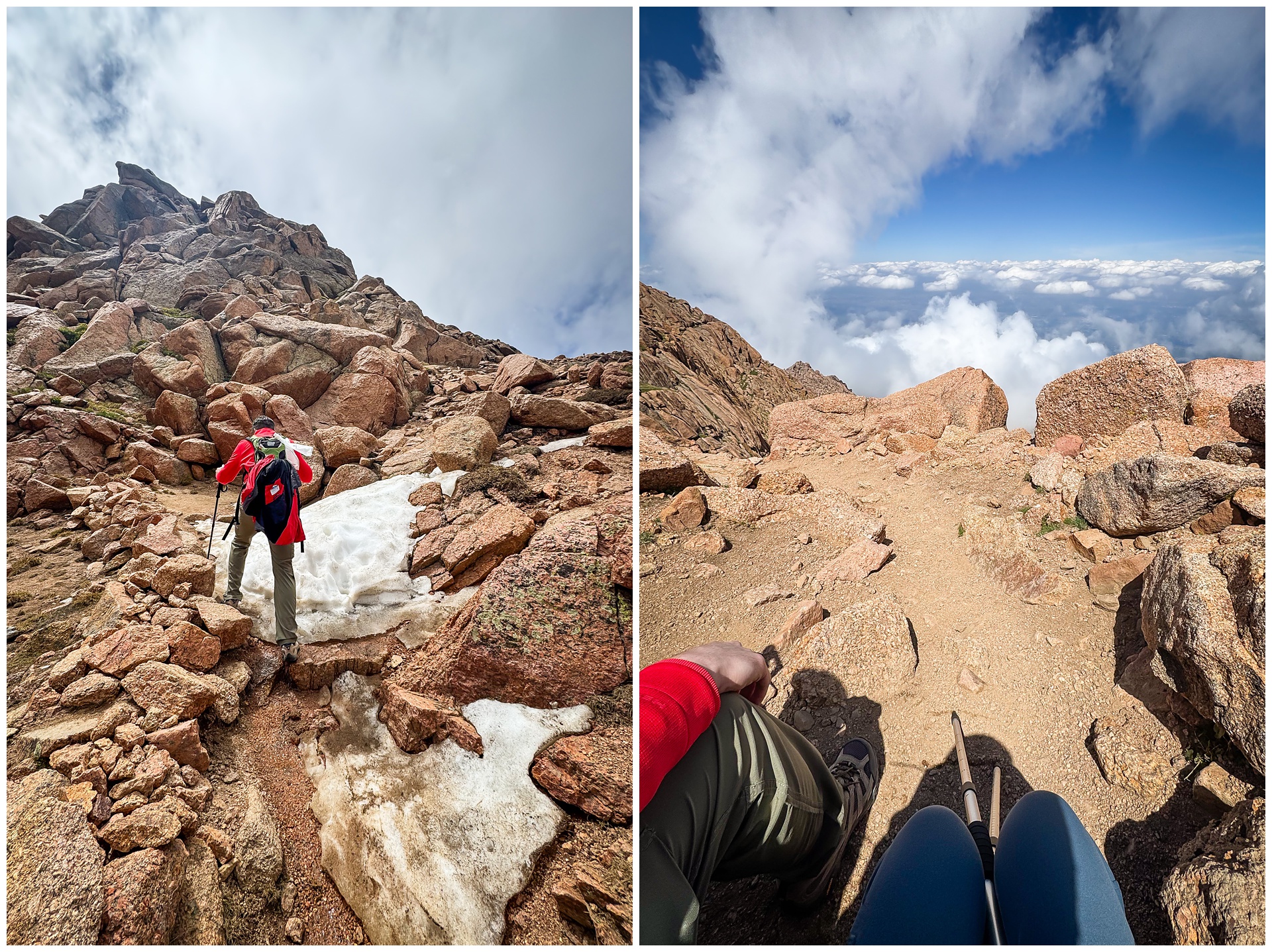 Being above this point in a storm isn’t safe, but we pressed on — and fortunately, no serious storm materialized. But those dramatic clouds still made for a powerful experience. My favorite part of this Pikes Peak hike was that striking cloudscape we encountered as we made the last leg of our ascent. These final few miles are usually the hardest, given that fatigue is increasing and oxygen is decreasing.