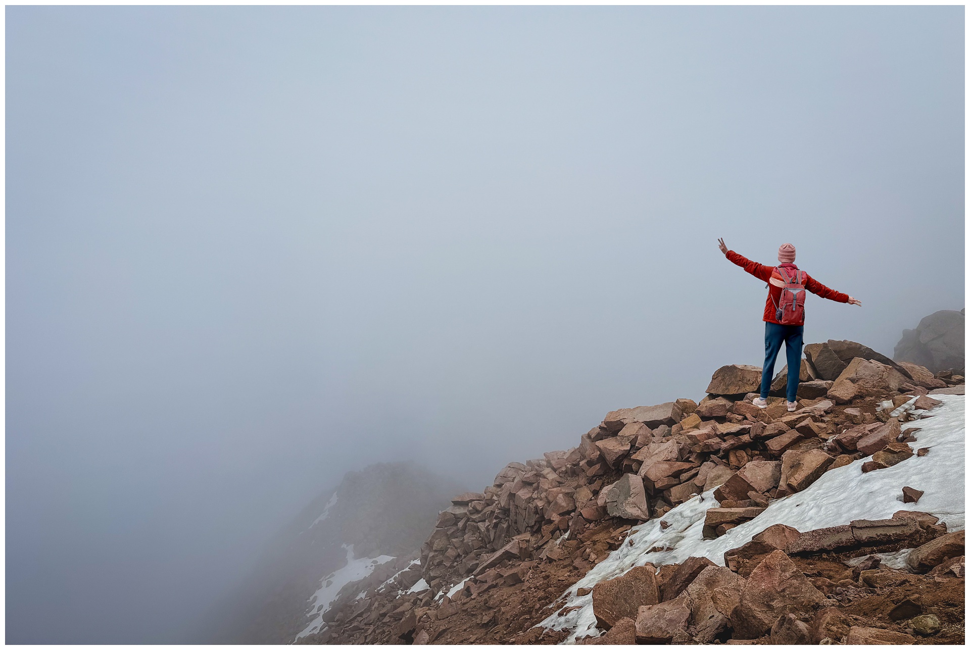 But this time — in stark contrast to my first three — I had a steady energy I think can be attributed in part to the magic of climbing through clouds, then standing above them with a perspective l’ve rarely ever had outside an airplane.